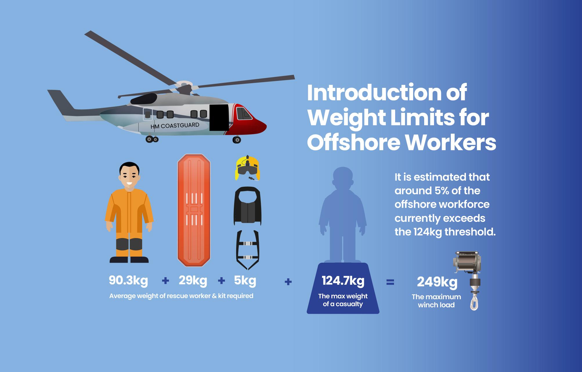 The cross-industry policy has been developed in response to concerns from the Maritime and Coastguard Agency (MCA) about the operational limits of Search and Rescue winching systems, which are designed to safely lift individuals weighing up to 124kg.